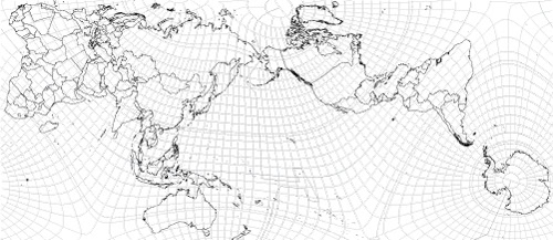 La projection de Mollweide aussi appelée projection de Babinet, quant à elle, est une autre façon de conserver les surfaces relatives, mais toujours au détriment des angles. Cette projection assez connue est fréquemment utilisée pour les planisphères en raison de son caractère compact.