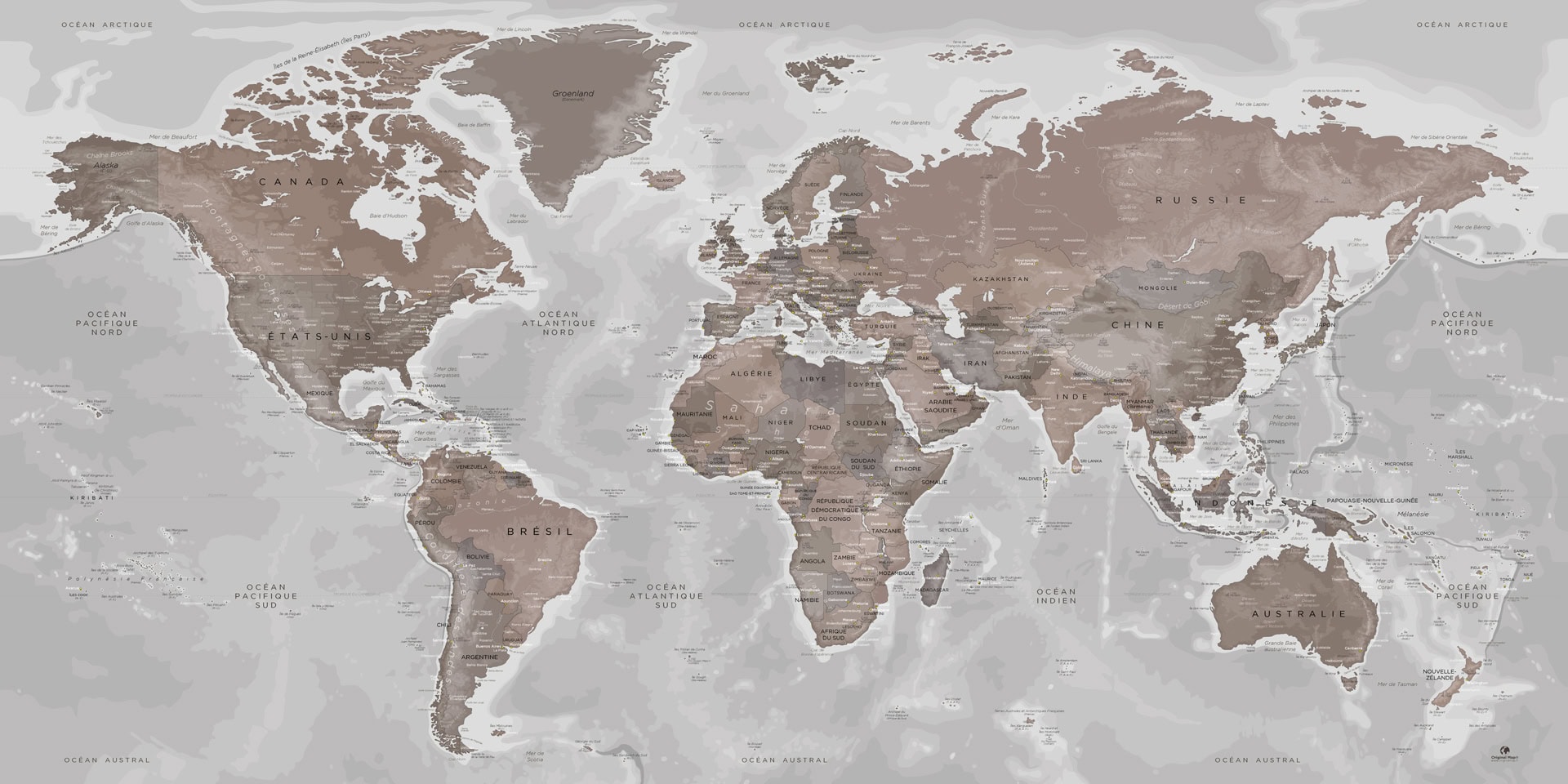 Apportez une touche élégante et intelligente à votre décoration avec cette Mappemonde en Poster ou en Tableau mural.