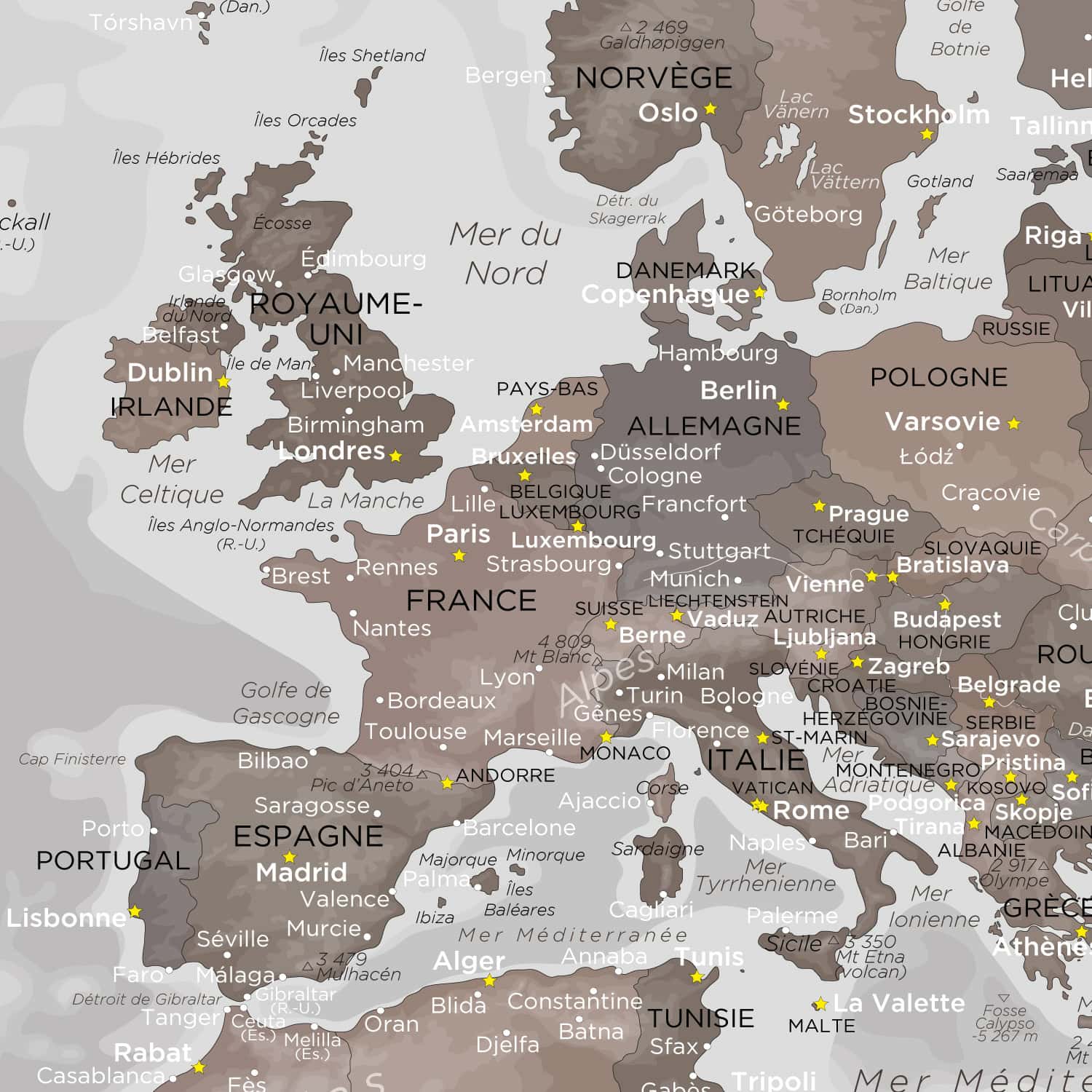 Entièrement en français et régulièrement mise à jour, cette carte du monde décorative est aussi un support pédagogique idéal.